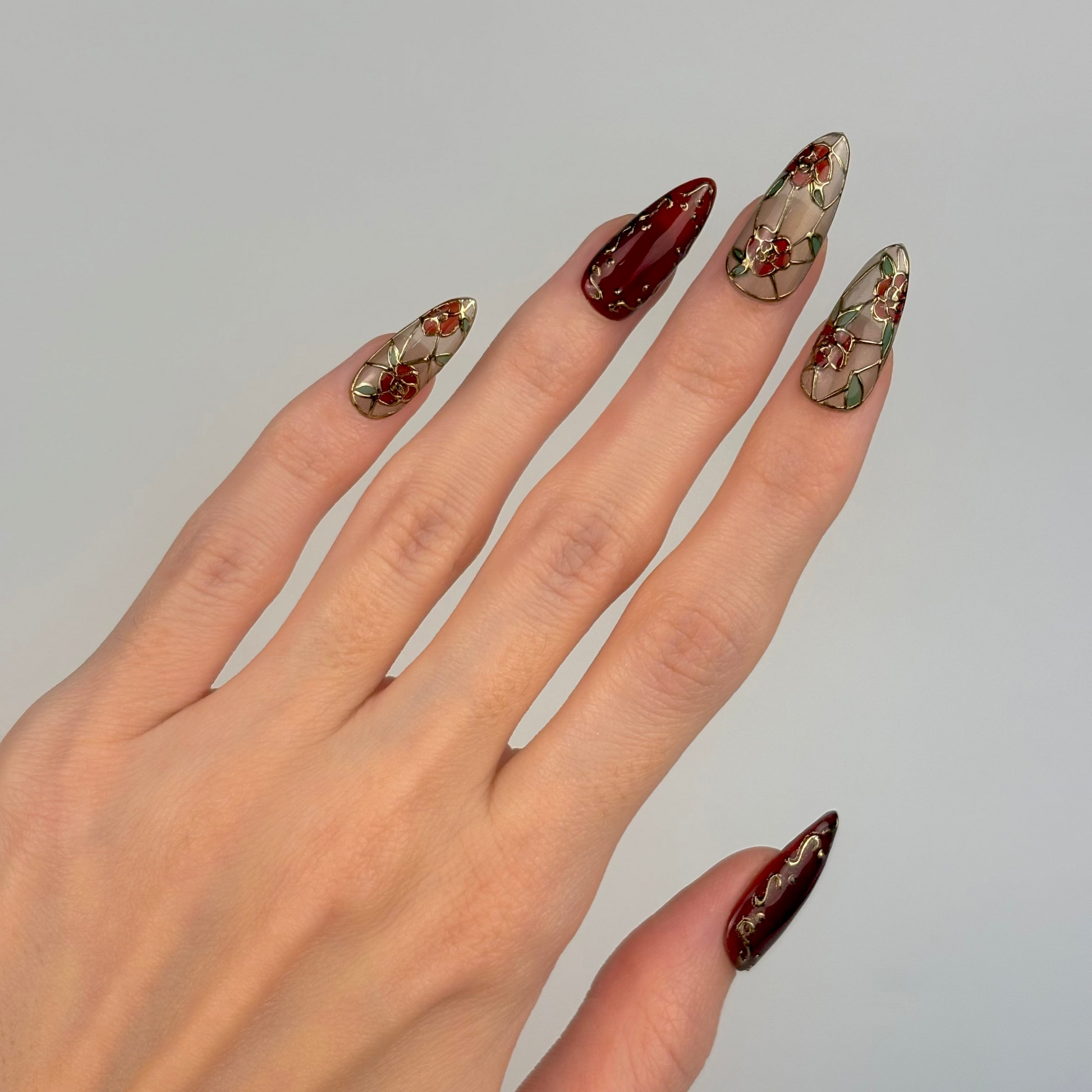 Každý necht je ručne vyrobený z viacerých vrstiev kvalitného gél laku, aby bol pevný, lesklý a pripravený na viacnásobné nosenie.
