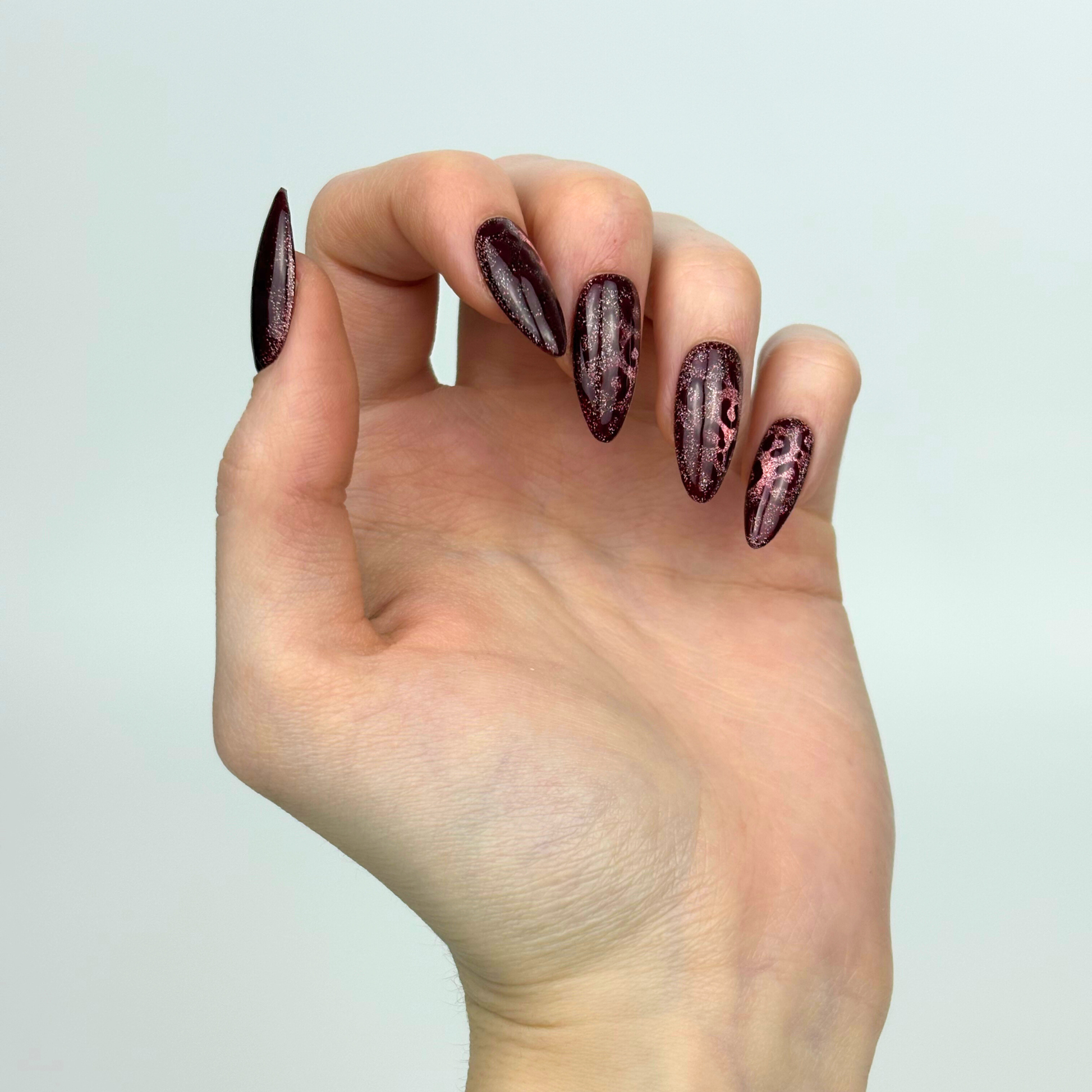 Každý necht je ručne vyrobený z viacerých vrstiev kvalitného gél laku, aby bol pevný, lesklý a pripravený na viacnásobné nosenie.